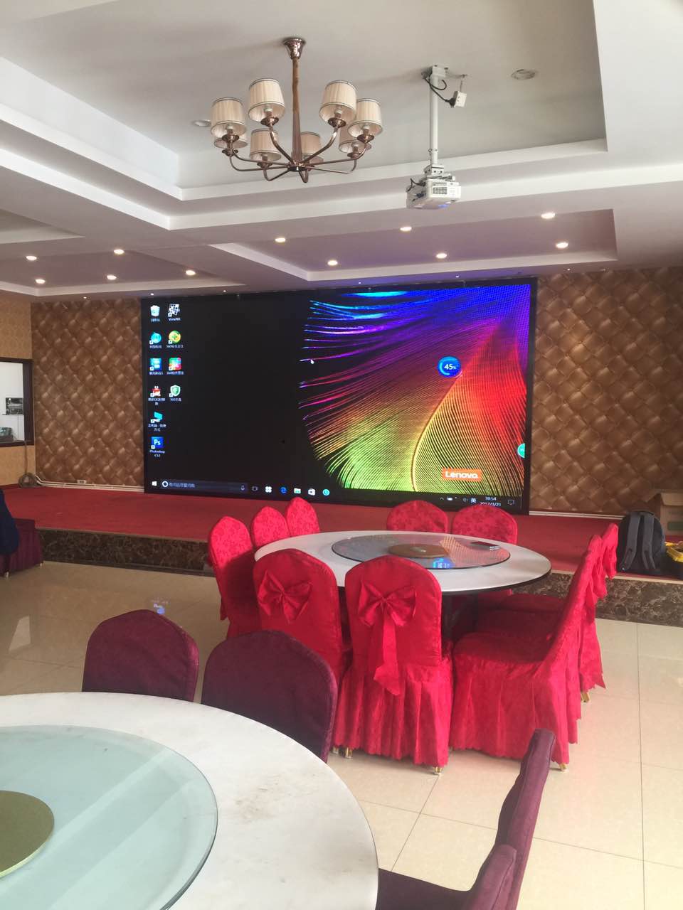 丹陽市華隆大酒店的屏室內P5全彩LED顯示屏由江蘇亮彩電子有限公司承建,江蘇亮彩LED顯示屏制造廠家生產的P5顯示屏憑著選材優質,播放效果高清、色彩還原性好等優點得到客戶認可。