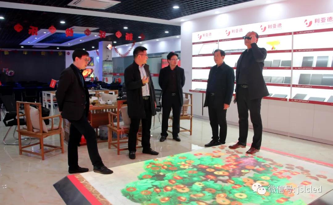 各領導一行首先來到利亞德(江蘇·常州)展廳參觀了LED顯示、照明產品,章總介紹了特色產品,如透明屏、城市景觀亮化、文旅、智慧城市建設(智慧燈桿)等,包含多類不同的應用場景。領導們親身體驗了3D顯示屏和地磚互動屏,對此贊賞有加 。